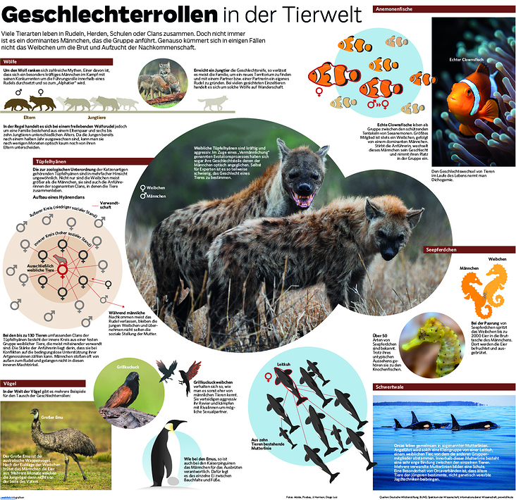 Eineinhalbseitige Infografik zumThem Geschlechterrollen in der Tierwelt