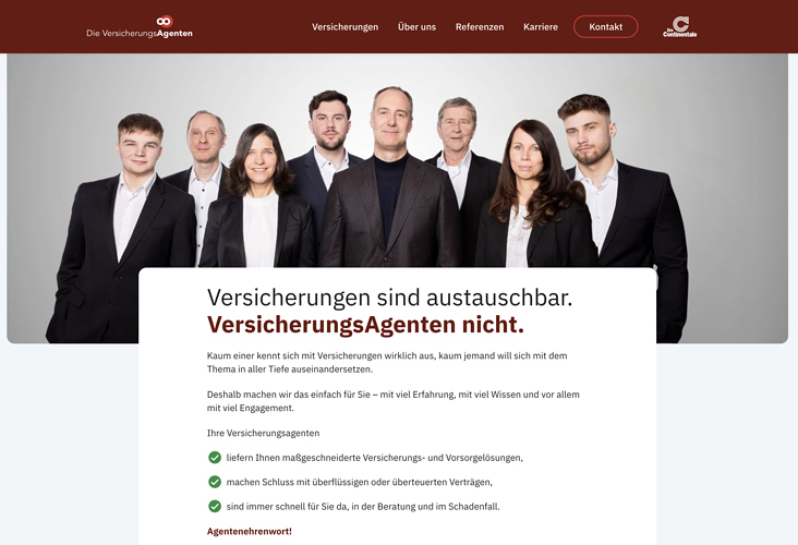 Beratung, Konzeption und Textarbeiten für die Website der Versicherungsagenten in Berlin.