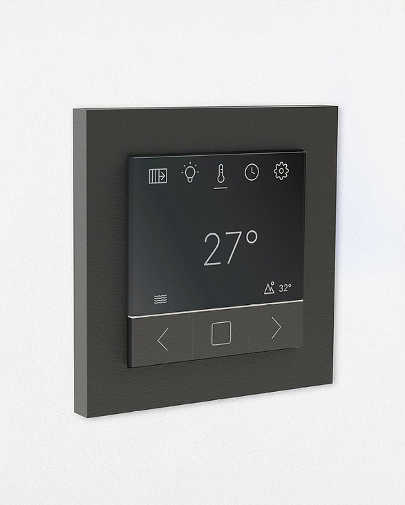 Im Rahmen unseres Designstudios Platt & Form haben wir ein freies Konzept für eine Poolsteuerung entwickelt, das zeigt, wie modernes User Interface (UI) und Human-Machine Interface (HMI) funktional, minimalistisch und ästhetisch umgesetzt werden können. Die Steuerung ist in etwa so groß wie ein Lichtschalter und ermöglicht die Kontrolle wichtiger Poolfunktionen wie Temperatur, Uhrzeit, Licht und das automatische Öffnen oder Schließen der Poolabdeckung. Trotz der kompakten Größe wurde besonderer Wert auf User Experience (UX) gelegt: Alle Informationen sind jederzeit klar ablesbar, sodass Nutzer intuitiv und schnell die gewünschten Einstellungen vornehmen können.