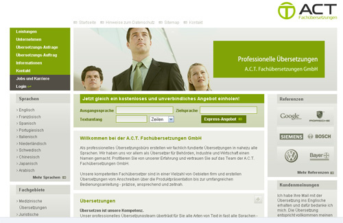 Design und Web 2. 0 Programmierung, Erstellung des kompletten CI (Logo, Geschäftspapiere etc. ) (www. act- uebersetzungen. de)